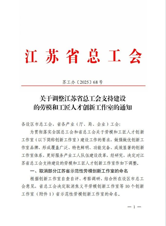 喜报!戴洪林劳模创新工作室荣获江苏省总工会支持建设认定